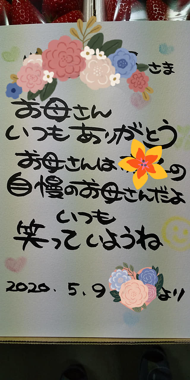 イチゴに添えられた感謝カード 長門のゆきちゃん作