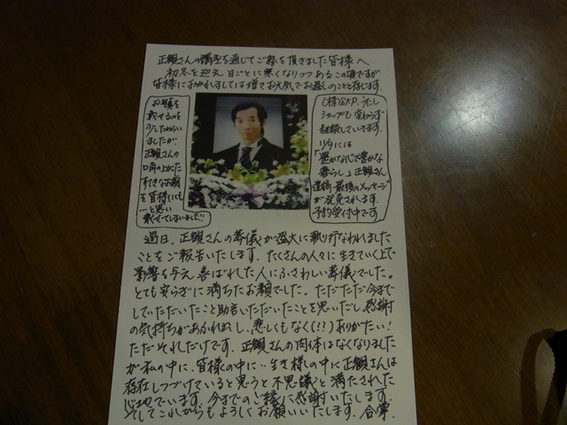 そのうたしショップほわいとの隅さんからハガキが届いた。