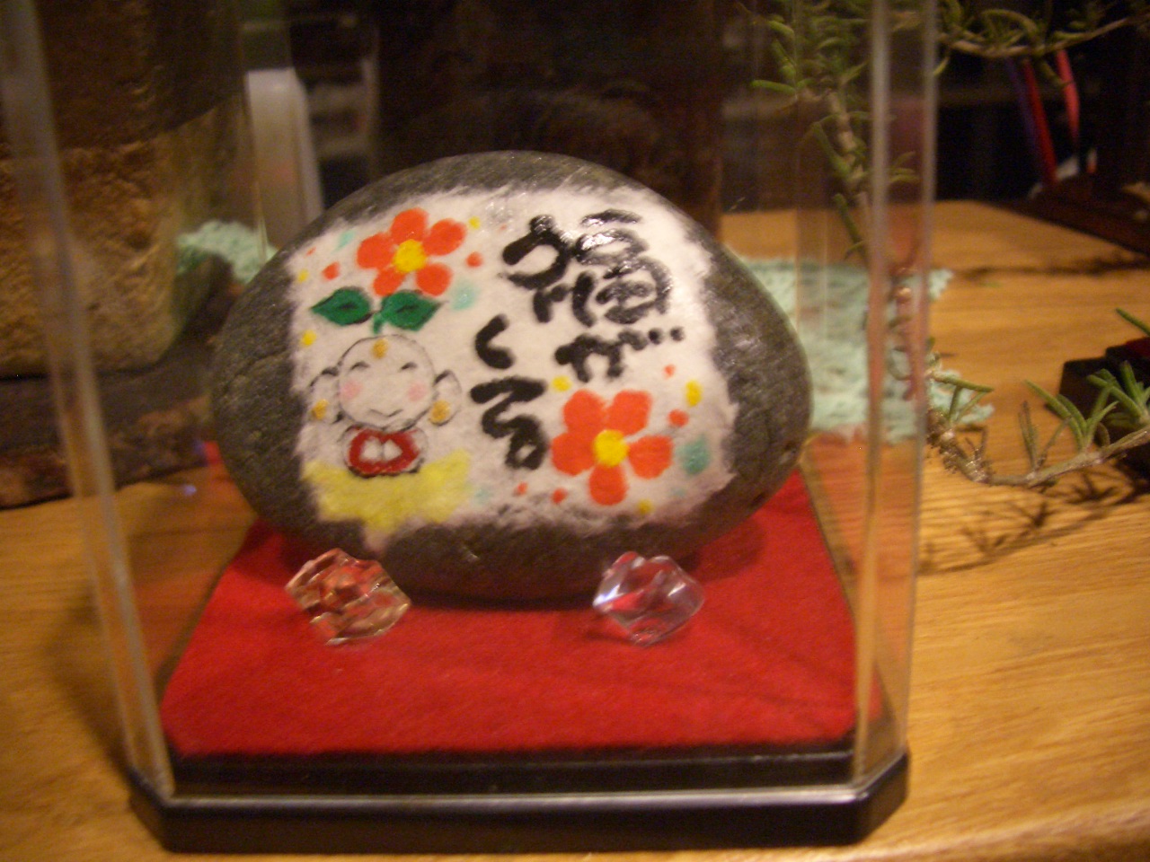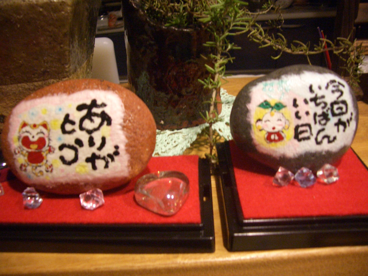 自然石に絵と文字を書いていますが