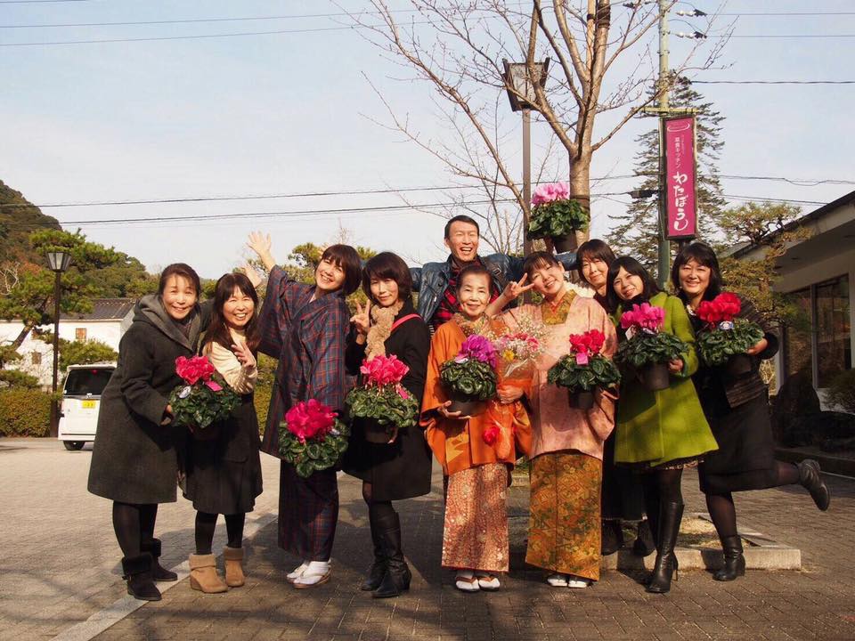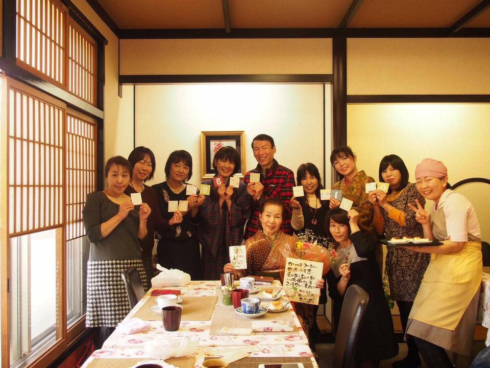 みんなから花束を贈り、智ちゃんは絵手紙、