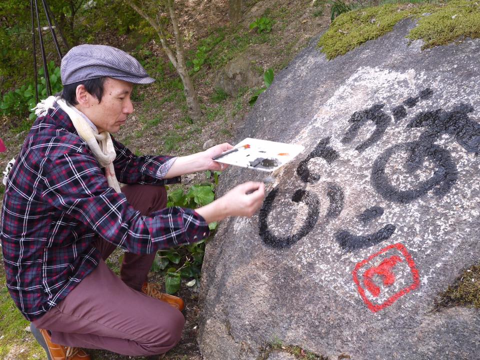たえちゃんから、そこにある岩に文字を書いてとたのまれて、