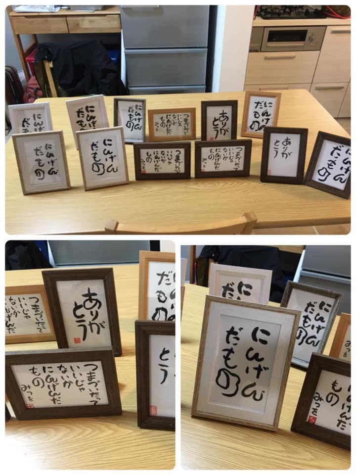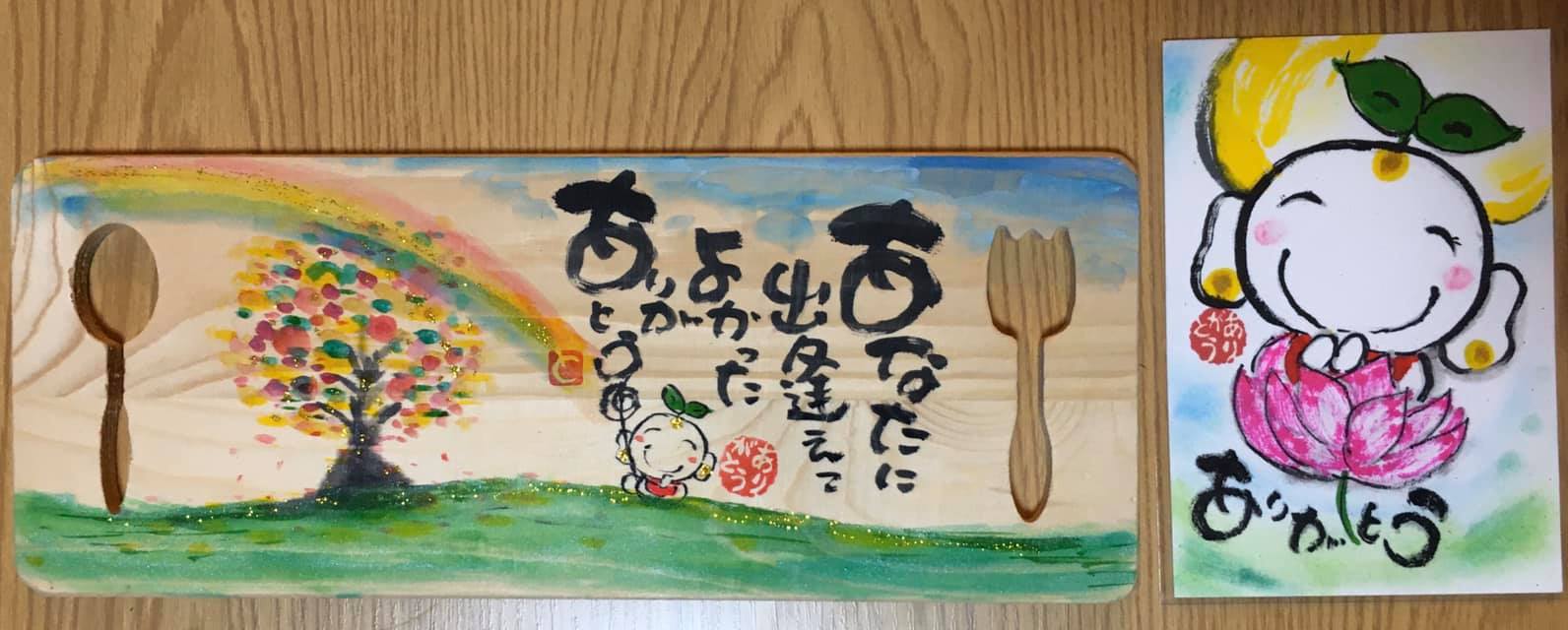 仙台筆文字セミナー サイコーな一日になりました*\(^o^)/* 主催のよっぴーが書いてくれたポスター そして、ありあとうの森キャラクター勢揃いの押し花作品 ありがとう