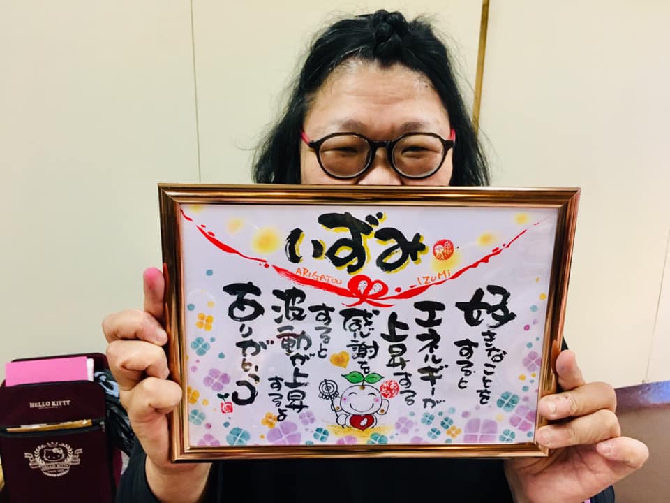 3秒幸せ詩人「ありがとうの森」筆文字セミナーin山口柳井いかち