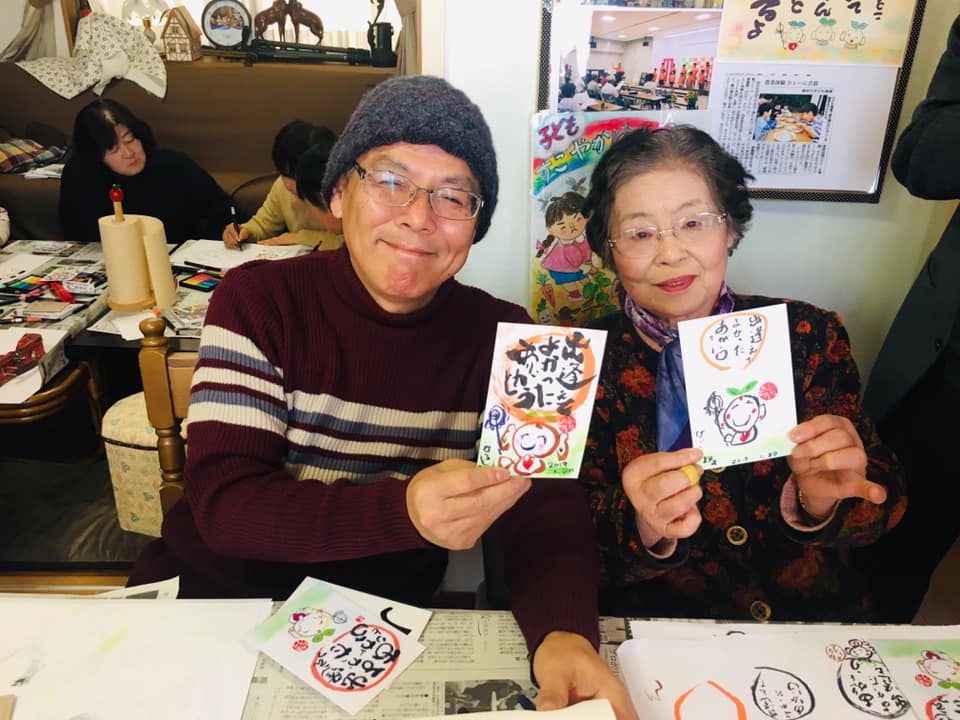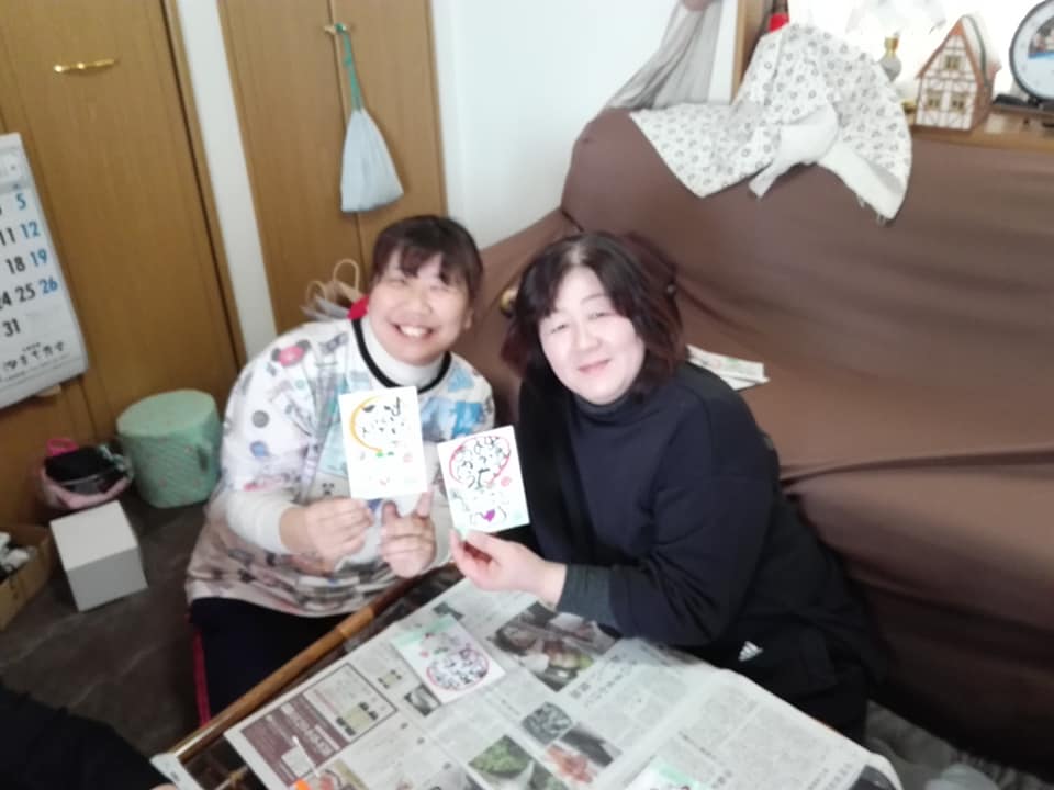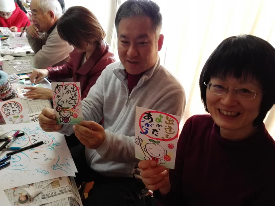 短時間でハガキ作品を書いていただきました