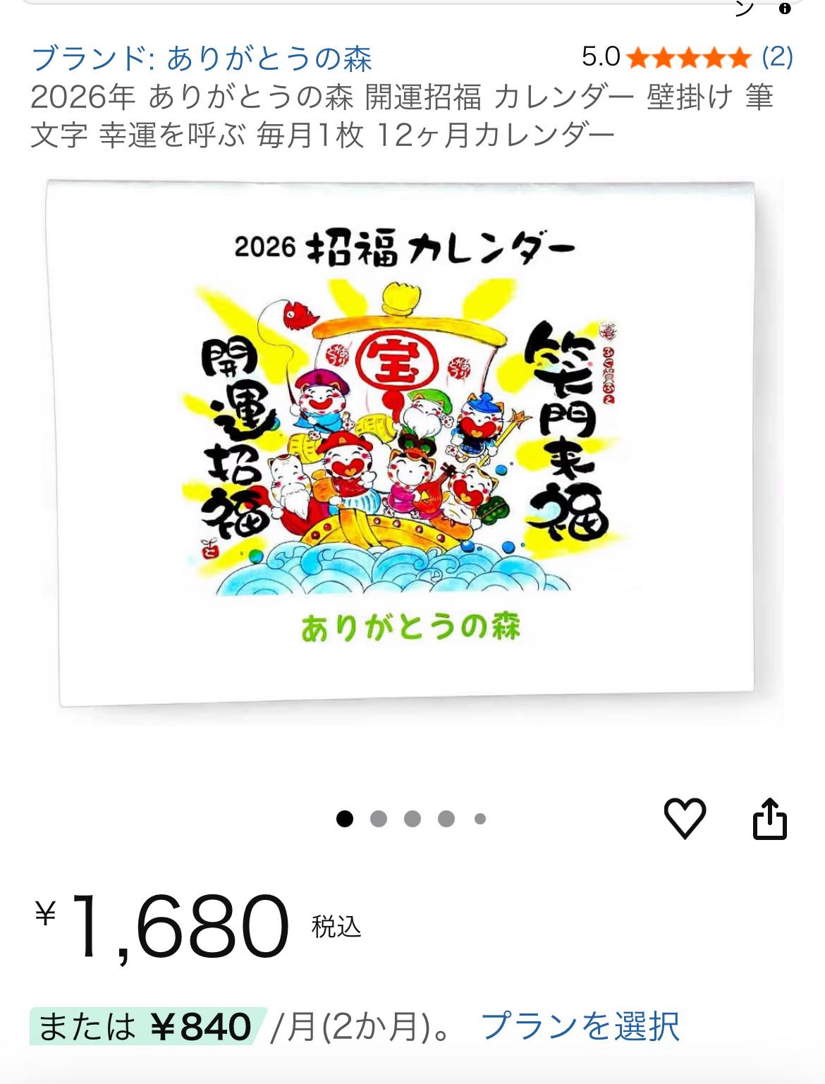 【2026年ありがとうの森招福カレンダー】