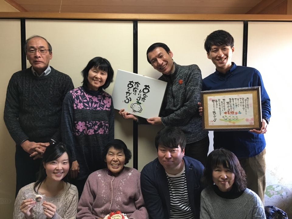 産んでくれた母、貞子さんの米寿祝い