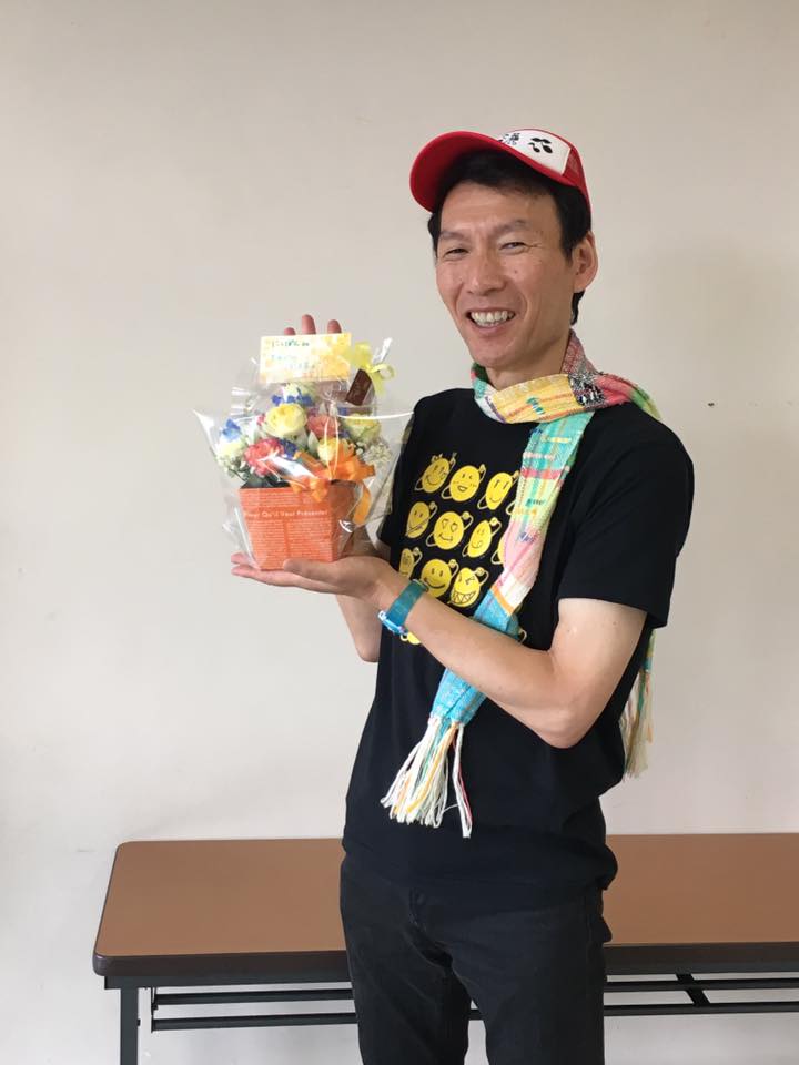 開始前、仁美ちゃんがお花を持って来てくれて